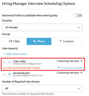 - If the interviewer has not yet 'synced' their calendar and will provide a link to invite them to sync their calendar